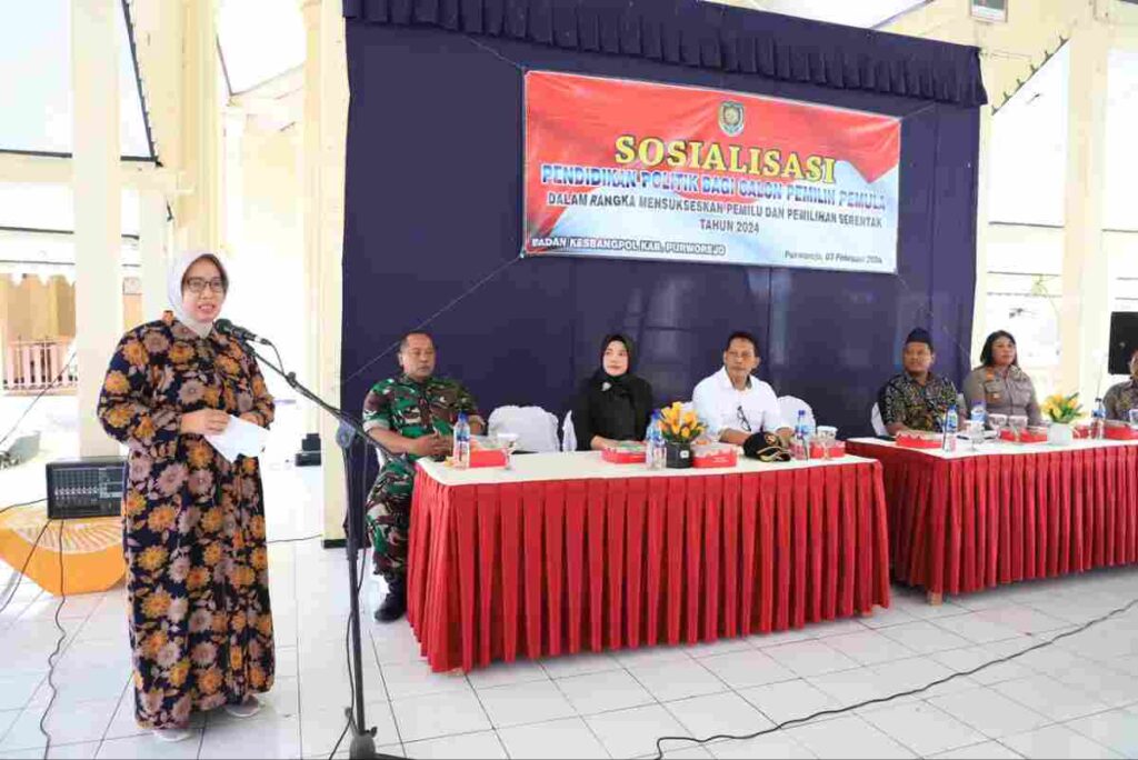PURWOREJO – Pendidikan Politik Bagi Masyarakat/Pelajar di Kabupaten Purworejo tahun 2024 kembali dilaksanakan Pemkab Purworejo melalui Badan Kesatuan Bangsa dan Politik (Kesbangpol). Acara yang bertempat di Pendopo Kawedanan Kutoarjo pada Sabtu (03/02/2024), tersebut dihadiri oleh Bupati Purworejo Hj Yuli Hastuti SH didampingi Kepala Badan Kesbangpol Agus Widiyanto SIP MSi, Wakil Ketua DPRD Kabupaten Purworejo H. Budi Sunaryo SSos, Komisioner KPU Kabupaten Purworejo Imam Turmudi SSy MSi serta Forkopimcam Kutoarjo.