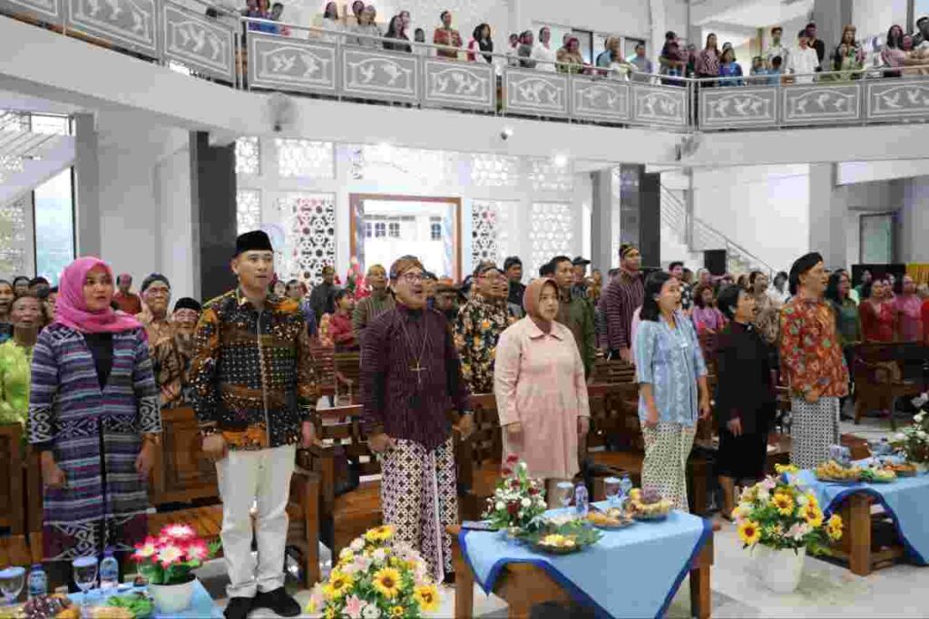 PURWOREJO – Di tengah guyuran hujan deras, Bupati Purworejo Hj Yuli Hastuti SH menghadiri perayaan ulang tahun ke 124 Gereja Kristen Jawa (GKJ) Purworejo, di GKJ Purworejo Minggu sore (04/02/2024). Turut mendampingi Kabag Kesra Setda Kabupaten Purworejo Andang Nugerahatara S SSTP MM dan Kabag Prokopim Ulik Sri Widiatmi SSos MAP.