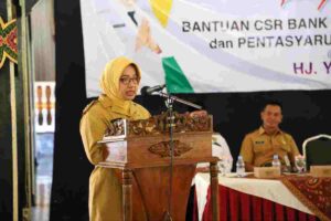 PURWOREJO – Bupati Purworejo Hj Yuli Hastuti SH menyerahkan Bantuan CSR Bank Jateng KCP Purworejo Tahap 2 dan bantuan Baznas, Senin (5/2/2024). Penyerahan bantuan untuk lima kecamatan yakni Kecamatan Purworejo, Bener, Bagelen, Banyuurip dan Bayan dipusatkan di Pendopo Kabupaten Purworejo.
