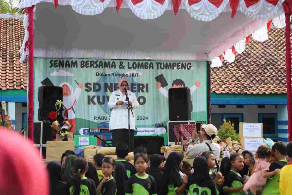 Hal itu disampaikan Bupati Purworejo Hj Yuli Hastuti SH saat menghadiri HUT SD N Kuwojo ke 113, yang diwarnai dengan senam massal di halaman sekolah, Rabu (07/02/2024). Turut hadir Forkopimcam Bagelen dan Kepala Desa Dadirejo.