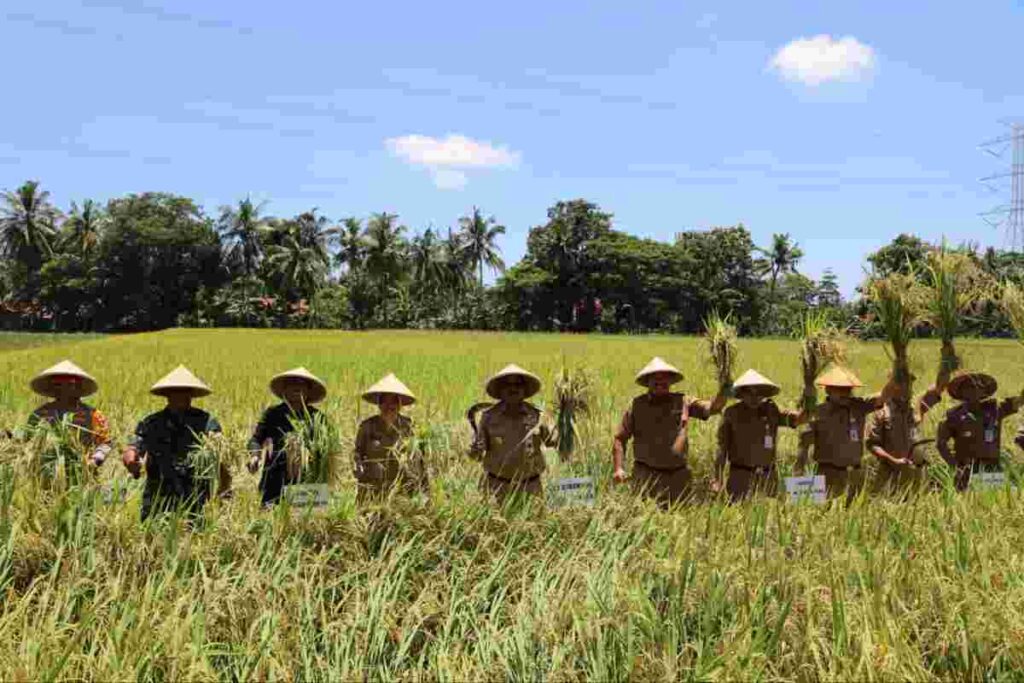 PURWOREJO – Pj Gubernur Jawa Tengah Komjen Pol (Purn) Drs. Nana Sudjana MM bersama Bupati Purworejo Hj. Yuli Hastuti SH. didampingi Forkopimda Kabupaten Purworejo, melaksanakan kegiatan panen raya padi di Desa Tunjungan, Kecamatan Ngombol, Senin (26/02/2024).