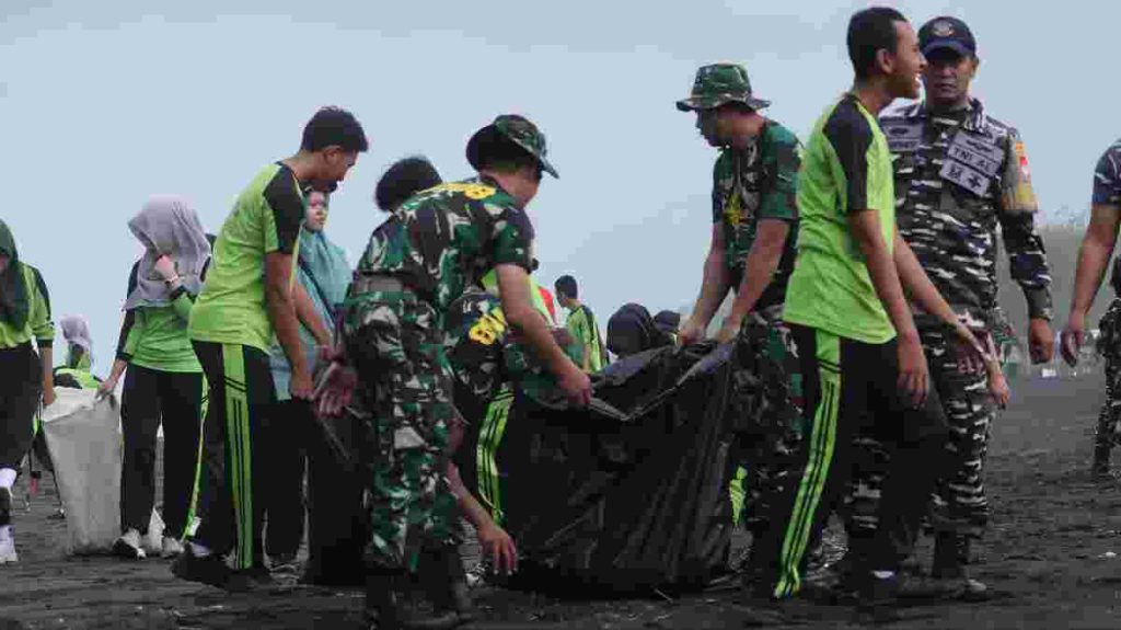 “TNI bersama stakeholder yang lain hadir secara nyata dan membantu mengatasi permasalahan sampah yang ada di Pantai Dewaruci,” tegas Dandim.