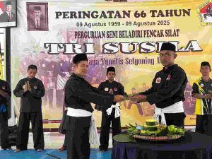 “Semoga dengan ulang tahun ini menambah semangat kebersamaan melestarikan olahraga tinggalan leluhur kita, budaya kita. Semoga perguruan Tri Susila Indonesia kedepan bisa menciptakan atlet atlet pencak silat yang bermanfaat untuk perguruan, kabupaten nanum syukur bisa masuk nasional bahkan internasional,” ungkapnya.