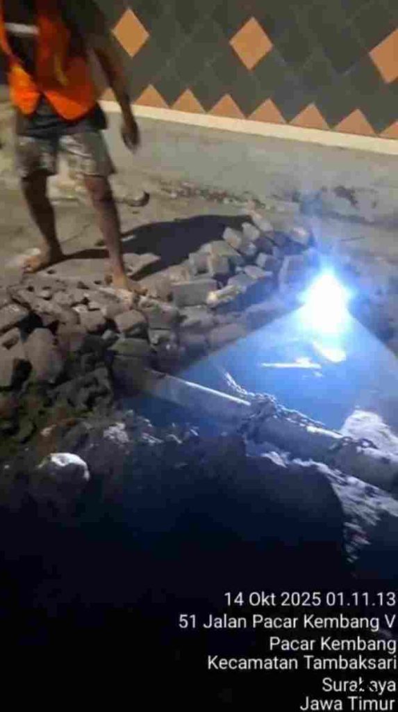 WASP76NEWS.COM||Surabaya – Aroma kejanggalan tercium kuat dari pengerjaan penarikan kabel primer tembaga milik PT Telkom Indonesia yang terjadi di Jalan Kampung Pacar Kembang RT 09, RW XII, Kelurahan Pacar Kembang, Kecamatan Tambaksari, Surabaya, pada Selasa dini hari (14/10/2025).