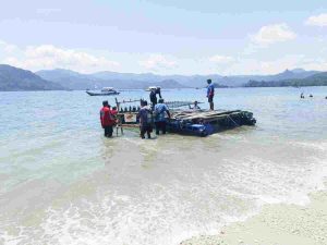 siangnya mengadakan program penanaman terumbu karang di pantai Mutiara Trenggalek, yaitu program penanaman terumbu karang dengan media 20 bioreftek, 5 kerangka besi dan 4 eco fish house. media kerangka besi dengan ukuran 2,1 x 2,2 m dengan jumlah besi 13 yang terisi 151 coral. jadi Total keseluruhan ada 1035 coral” tutupnya. ( Mahmudi )