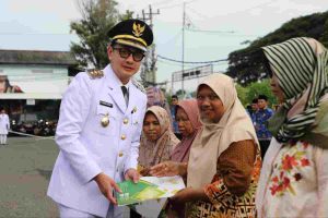 Usai upacara, dilaksanakan penyaluran dana zakat, infak, dan sedekah (ZIS) dari Baznas Kabupaten Purworejo kepada 12 Mustahik (penerima zakat) yang diserahkan secara simbolis oleh Wabup Dion.