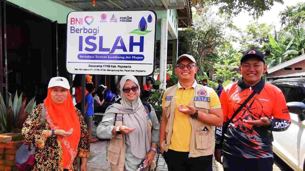WASP76NEWS.COM|| MOJOKERTO – Dalam rangka Peringatan Bulan Pengurangan Risiko Bencana di Mojokerto Raya, Provinsi Jawa Timur, BNPB (Badan Nasional Penanggulangan Bencana) berkolaborasi dengan PT. BNI, Tbk melalui BNI Berbagi telah menyelenggarakan kegiatan Instalasi Sistem Lumbung Air Hujan (ISLAH) di Tiga Lokasi di Kabupaten Mojokerto ;