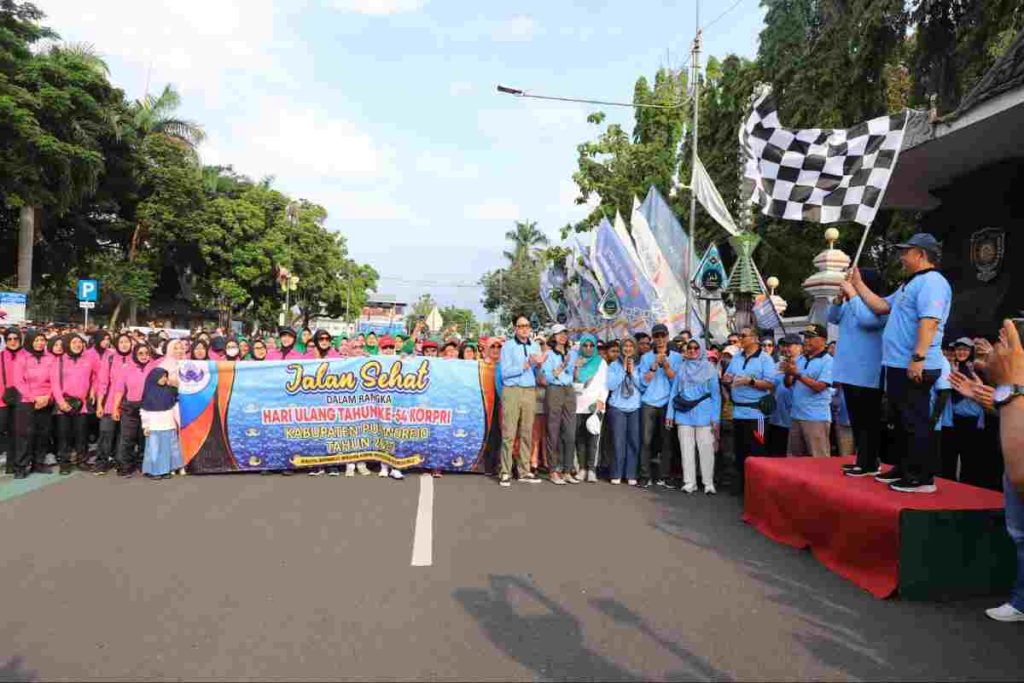 WASP76NEWS.COM||Purworejo – Ribuan keluarga besar Korps Pegawai Republik Indonesia (KORPRI) dan masyarakat umum antusias mengikuti jalan sehat yang diselenggarakan oleh Dewan Pengurus (DP) KORPRI Kabupaten Purworejo, dalam rangka menyemarakkan HUT ke-54 KORPRI, Minggu (30/11/2025).