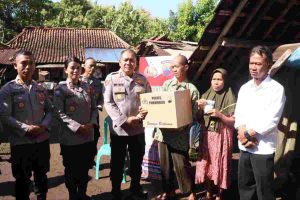 Dalam kegiatan tersebut, Kapolres Purworejo memberikan bantuan sembako kepada Mbah Sari (70), seorang lansia yang hidup seorang diri tanpa suami dan anak.