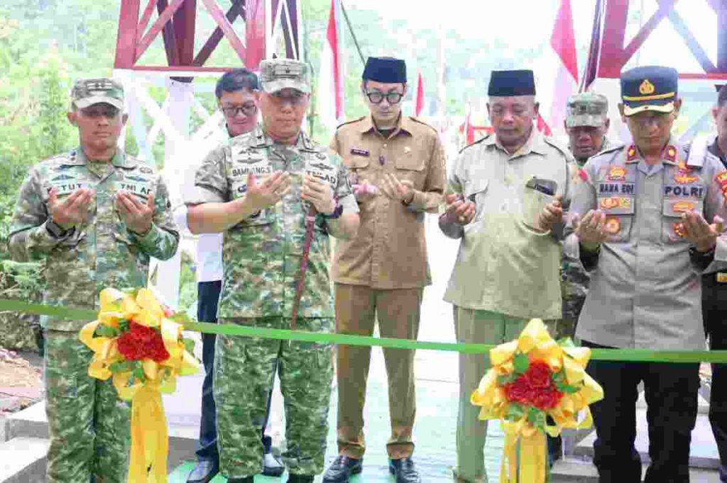“Terima kasih kepada TNI AD mulai dari Kodam, Korem, Kodim hingga Koramil yang telah memberikan bantuan jembatan ini. Terima kasih juga kepada Bapak Presiden Prabowo yang telah menginisiasi program Jembatan Merah Putih,” ujarnya.