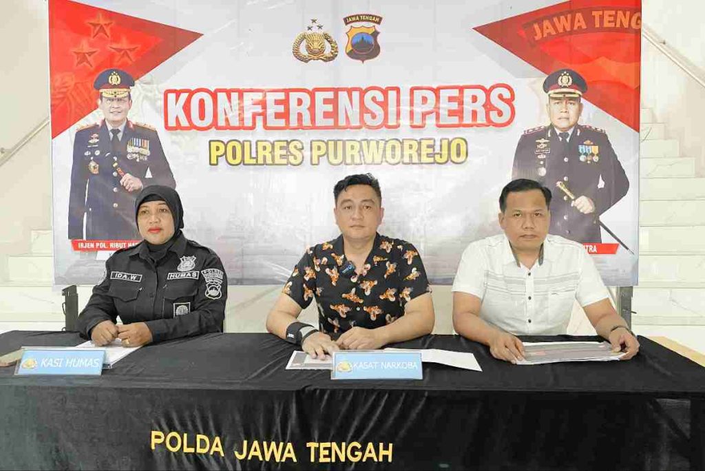 Kapolres Purworejo, AKBP Windy Syafutra, melalui Kasatres Narkoba AKP Amirudin Zulkarnain, didampingi KBO Narkoba Ipda Bambang Rachmanto dan Kasi Humas AKP Ida Widaastuti, membeberkan kronologi penangkapan tersebut dalam konferensi pers yang digelar di Lobby Mapolres Purworejo, Rabu (22/04) pagi.